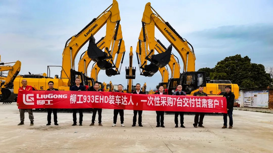 2021 ,新年新气象,柳工挖掘机交机忙不停!昨日大年初六,7台柳工CLG933EHD挖掘机整齐列队,完美交付甘肃大客户,场景巍巍壮观。