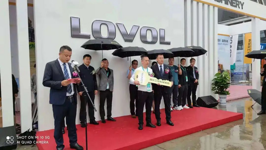 赵总的公司是邵阳是非常重要的基础施工公司,拥有各类设备30余台,年营业额近亿元。多年的选择与信任,赵总现场交机提车,雷沃工程机械集团副总经理、营销公司总经理王德永亲自为赵总交付打桩机钥匙。