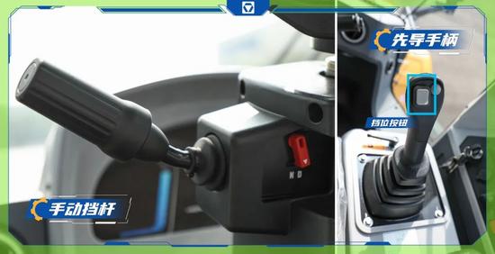 启动时,注意手动挡杆和先导手柄挡位按钮需要处于空挡状态。