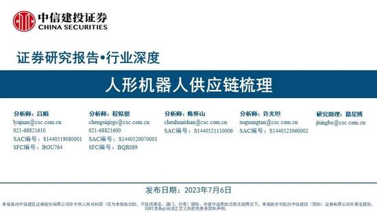 人形机器人供应链梳理【中信建投机械吕娟团队】