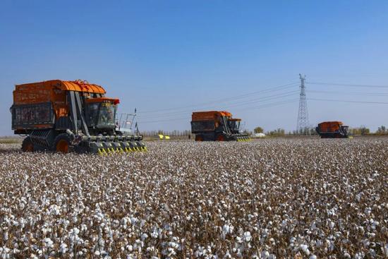 铁建重工采棉机群在棉田作业