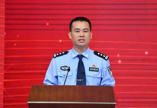 最后一位作报告的是南宁铁路公安局南宁铁路公安处南宁东站派出所二级警长高明伟,他那触动人心的故事、坚毅笃定的眼神给大家留下深刻印象。从警21年,他参与办理刑事案件70多起、治安案件800多起,解决旅客求助问题1.3万多件。