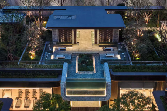 华发锦宸赋通过“四相东方”归家体系——落客庭院、归家水院、下沉庭院、单元门庭,融合中国传统建筑美学与现代仪式感,为业主打造沉浸式归家体验。
