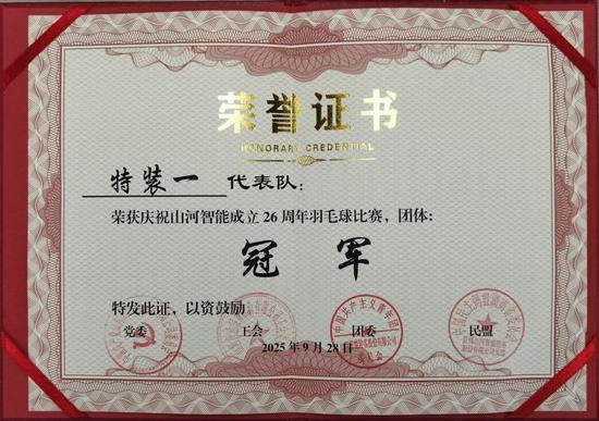 未来,特装公司将以此次获奖为动力,把赛场上的拼搏精神融入工作,再接再厉,为山河智能发展贡献力量,以更优成绩迎接更多挑战。