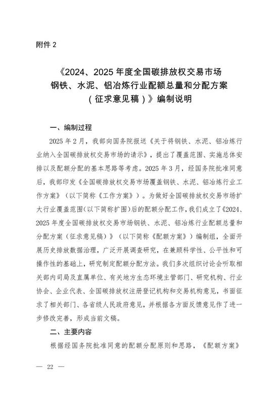 附件2:2024、2025年度全国碳排放权交易市场钢铁、水泥、铝冶炼行业配额总量和分配方案(征求意见稿)编制说明.pdf