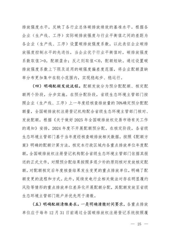 方案还明确了水泥行业配额计算方案,2024年度各重点排放单位获得的配额与其经核查的实际碳排放量相等。2025年度水泥行业仅生产白色硅酸盐水泥熟料的生产线、当年度电石渣替代率超过15%的水泥熟料生产线、石膏制硫酸副产硅酸盐水泥熟料生产线获得的年度配额与其经核查的实际碳排放量相等。其余钢铁、水泥、铝冶炼行业重点排放单位配额按照各行业盈亏基本平衡的原则进行分配,配额盈缺率控制在较小范围内。
