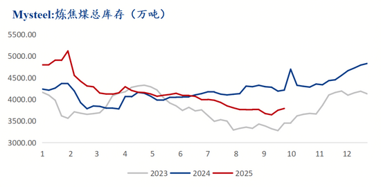 9月上旬由于行情下跌,下游焦钢企业持续去库,而上游煤矿端由于9月3日前后主动减产检修,坑口库存并未出现大幅累积。而下半月下游焦钢企业集中开始补库,煤矿端库存快速去化,焦煤库存迅速转移至下游。从总库存开看,炼焦煤基本面正在转向宽松,主产地煤矿复产叠加进口量回升,炼焦煤总库存正在逐步累积,但目前来看库存压力不大,而且炼焦煤结构性矛盾更为突出,骨架煤种主焦煤、肥煤仍较为稀缺,气煤等配焦煤种库存压力较大,也是这波上涨未能超过前期高点的重要原因。