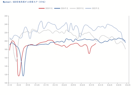 国家统计局数据显示,1-8 月份,全国原煤产量 316517 万吨,同比增产 2.8%。8 月份全国原煤产量 39050 万吨,环比上月增加 2.4%,同比去年下降 2.4%。9月煤矿生产扰动因素增多,虽然主产地山西炼焦煤矿安全、环保检查逐步走弱,不过9月3日前后大批煤矿开启短期停产检修,停产时间多在2-7天,导致煤矿阶段性减产。不过后续煤矿复产进度相对乐观,产量持续恢复。另外,内蒙区域因查超产以及违规产能整改要求影响,新增部分煤矿停产,区域内肥煤产量继续下降,短期暂无复产迹象。