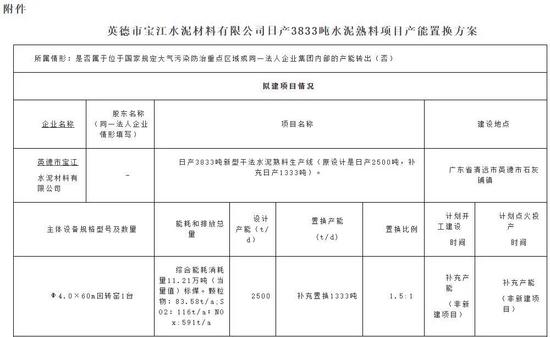 附件:英德市宝江水泥材料有限公司日产3833吨(水泥熟料)项目产能置换方案