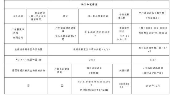 按照《工业和信息化部关于印发《水泥玻璃行业产能置换实施办法(2024年本)》的通知》(工信部原〔2024〕206号)的要求,现将《英德市宝江水泥材料有限公司日产3833吨(水泥熟料)项目产能置换方案》予以公告,欢迎社会公众进行监督。