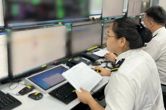 10月3日8时许,在广州南站安全生产指挥中心大厅里,对讲机和电话应答声此起彼伏。田丽一边“眼观六路”,紧盯屏幕、点击鼠标、发出语音指示,一边“耳听八方”,接收来自站台、检票口、出站口、给水班的联控。