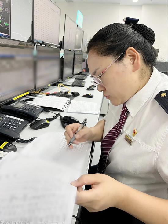 “数据监控、调度协调和应急处置的高效协同,对我们的作业要求非常高。”田丽说。翻开她的登记簿,上面密密麻麻写满了当班重点事项。