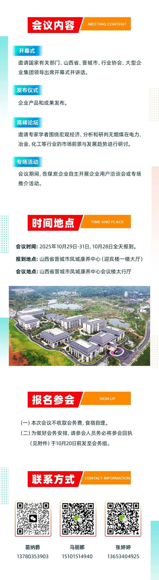 为深入贯彻落实习近平总书记视察山西重要讲话指示精神,全面贯彻新发展理念,构建新发展格局,扎实推进能源安全新战略,促进煤炭工业高质量发展,推动无烟煤产品由初级燃料向高价值产品攀升,推进无烟煤品牌企业与电力、冶金和化工行业深度融合,促进无烟煤产需协同健康发展,进一步提升无烟煤品牌企业在全国的知名度和影响力,经研究,定于10月29日-31日召开“2025 无烟煤产业大会暨无烟煤产需衔接会”。