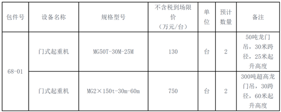 备注:以上限价包含满足技术要求的货物主体、备品备件、硬件软件、专用工具、运输费用、安装费用(人员配合安装需要的设备由项目提供)、培训费用等;国内装车运输到上海港,再从上海港到突尼斯比赛大港口,现场使用周期内的设备安装维修保养等涉及到的备件、配件、运输、人员、设备、保险、利润、税金等列明和不可预见的全费用,质保期内应需方要求发生的所有现场技术服务费用。
