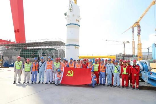 10月9日,国家电投广东廉江核电项目1号机组稳压器顺利吊装就位,为后续核岛反应堆厂房封顶创造了有利条件。