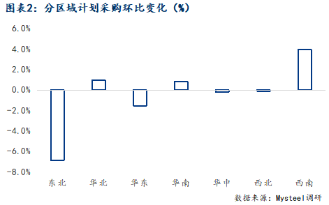 9月份样本企业全国建筑钢材的总采购量环比小幅增加,各区域有表现不一,东北、西北和华北区域负增长,幅度分别为-6.45%、-4.99%、-0.17%,其他区域采购量均是增加的状态,增幅普遍在5-10%的水平。本期调研内,各区域需求计划略有不同,但除了西南有4%左右的增长外,其他区域都处于负增长或微幅增长的水平。