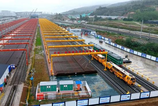 该工程面临极其复杂的地质条件,全线桥隧比高达94%,施工难度大。为攻克地形复杂、交叉作业多、安全风险高等难题,项目采用我国自主研发的新型铺轨设备和智能化管理系统,包括智能群吊和轨道工程运输管理智控平台,实现铺轨过程数字化、精准化管理,有效提升施工效率与安全水平。