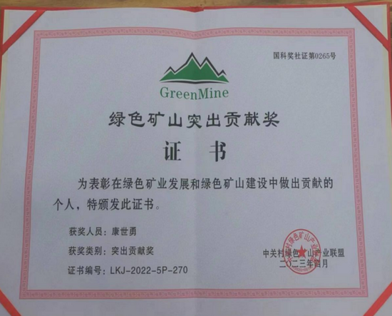 2023年4月,在北京召开的我国第六届矿业发展大会上,我获得了中国绿色矿山科学技术奖2022年度“绿色矿山突出贡献奖个人奖”。