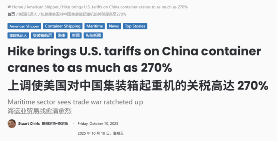 具体来看,USTR将对中国制造的岸边集装箱起重机和多式联运底盘分别加征100%关税,对轮胎式龙门起重机加征150%关税。这些税率将与此前针对补贴和倾销实施的反补贴、反倾销税叠加。据律所分析,叠加后的总关税可能落在125%至270%之间。