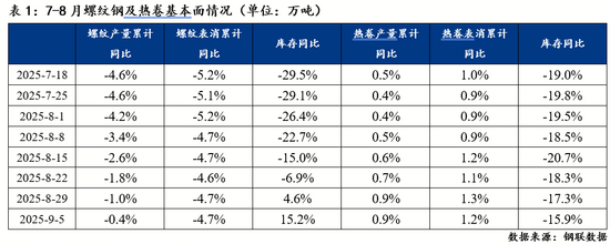 另一方面,“金九银十”旺季到来,建筑工地施工强度增加,带动螺纹钢消费有所好转。9月份,螺纹钢周均产量较8月下降4%,周均表观消费量较8月增加7%,供减需增的背景下,螺纹钢库存压力有所缓解。