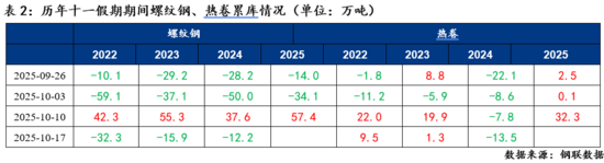 热卷供需面也在明显转弱。9月份以来,热卷库存长时间累库,这与往年旺季表现截然不同。十一节假日期间,热卷库存大幅累积,累库增幅创历史同期新高,库存同比增幅接近8%,反映供应偏高造成的库存压力突出。截止到10月10日,热卷产量为323.29万吨,供给依然在高位。当前长流程钢厂仍有一定的利润空间,主动减产意愿不强,而热卷下游需求同比增幅不及供应,高供应与需求不足的矛盾持续存在。