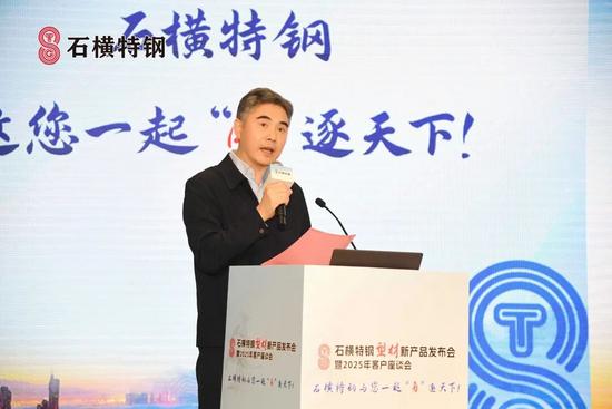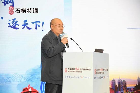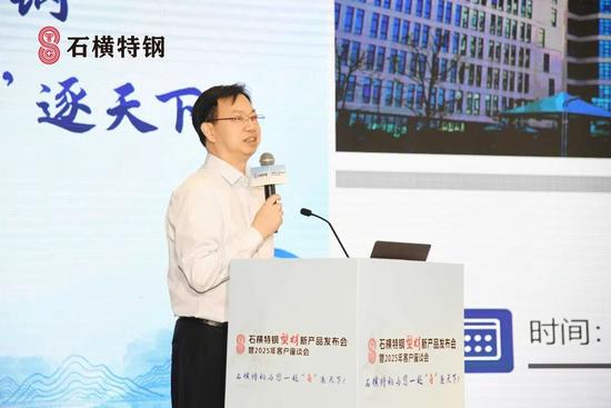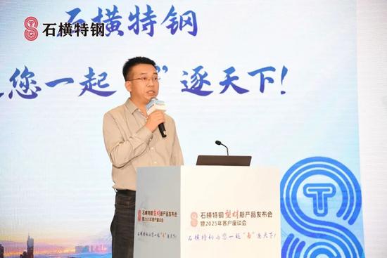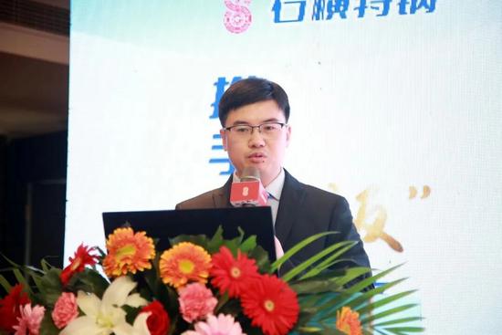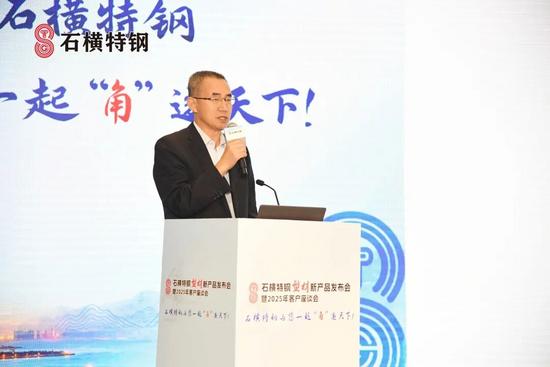随后,石横特钢营销公司总经理 谢庆一给大会做了《石横特钢产品发展规划及营销理念宣讲》报告。他从企业发展历程、产品结构、质量服务等方面介绍了石横特钢。经过几十年的发展,石横特钢通过不断转型升级、跨越式发展成为泰安特种建筑用钢产业集群,产品覆盖建材、板材、锚杆钢、型材四大产品体系。