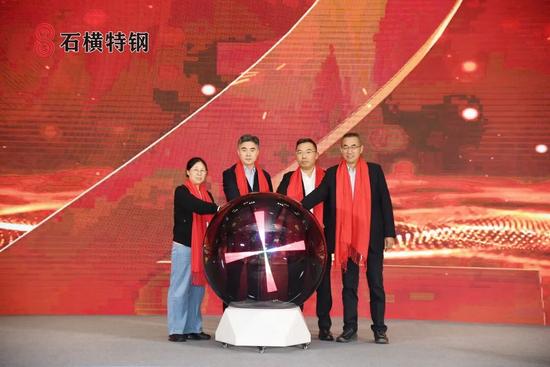 紧接着,会议进入了激动人心的石横特钢型材新产品发布环节。石横特钢集团有限公司常务副总经理安增超、上海钢联电子商务股份有限公司联席董事长总裁高波、中国电力企业联合会科技服务中心首席专家徐德录、青岛东方铁塔股份有限公司副总经理许娅南共同上台发布了型材新产品。以型材为媒,“逐梦”结缘,与会嘉宾共同见证石横特钢新产品发布!