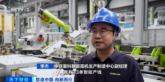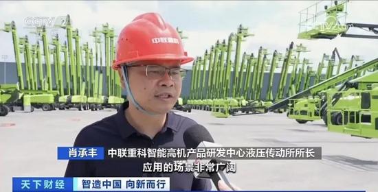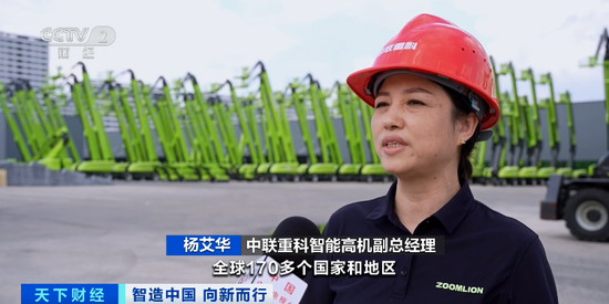 中联重科智能高机副总经理 杨艾华:我们全球有23个智慧产业园,已经建成的有16个,产品已经远销到全球170多个国家和地区,海外收入占比达到整个营收的50%以上。