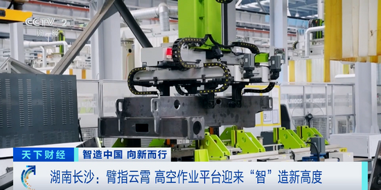总台央视记者 刘艺涵:臂式高空作业平台的智能化生产线,每20分钟就可以生产下线一台产品,记者身后的这道工序就创新采用车架自动组队生产。负责搬运的机器人搬运物料的重量可以达到1000kg,比传统人工组队生产效率提升52%,人员减少75%。目前,这条产线已经可以实现无人“黑灯”生产。
