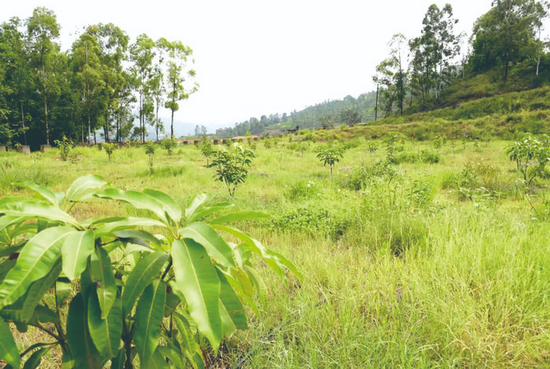 转机发生在2017年。秉持“人与自然和谐共生”的信念,矿区人拉开了一场绿色革命大幕。他们将矸石山科学划分为生产治理区和永久修复区,拟定中长期规划,坡面种植景观林固土,平台种植经济林生绿。治理中,还先后拆除矸石山周边的企业。在整理形成的16级平台的斜坡面覆土约20厘米,种植各种植物进行护坡固矸。每棵芒果树之间种植牧草绿化,并铺设喷灌一体的半自动化供水系统。几年间,250亩矸石山终于披上绿衣裳,展露出迷人的容颜。