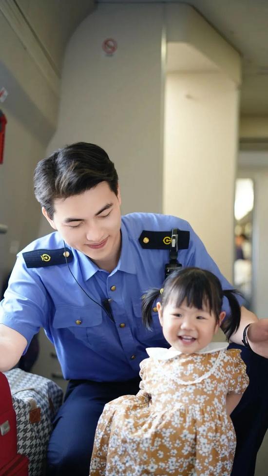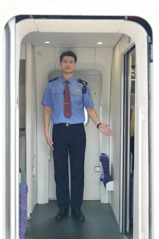 王中源凭借出众的身高、细腻的服务得到旅客的青睐,是班组里的服务明星,经常受到旅客表扬。