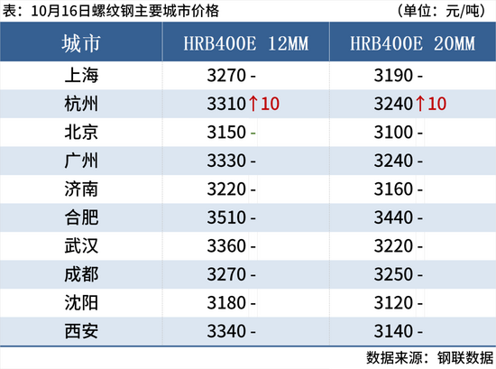 螺纹钢:10月16日,全国31个主要城市20mm三级抗震螺纹钢均价3212元/吨,较上个交易日下跌1元/吨。本周螺纹钢产量下降,库存下降,表观消费量明显回升,数据偏好。短期来看,尽管近期期螺持续回落,但受制于钢厂亏损,现货市场跟跌并不明显,同时近期基本面数据有所向好,市场心态好转。预计17日国内建筑钢材价格或将有探涨的可能。