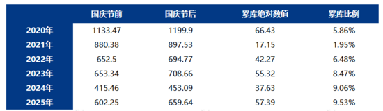 今年国庆期间,螺纹钢整体社会库存累库幅度超出往年。小编列举了近几年国庆节后的库存数据,由此可以看出,今年节后库存由602.25万吨增加至659.64万吨,绝对数值增加了57.39万吨,幅度上是增加了9.53%,无论是绝对数值还是累库幅度均是近几年之最。从市场贸易商实际体感上也可以看出,国庆节期间,钢厂生产和放货维持正常节奏,但实际出货量寥寥无几,最后库存水平出现阶段性新高,甚至于像福建区域还出现了节前市场部分规格紧张需要加价,节后规格基本齐全无需加价的情况。由此带来的库存压力迫使一部分贸易商降价进行销售以此减轻风险。