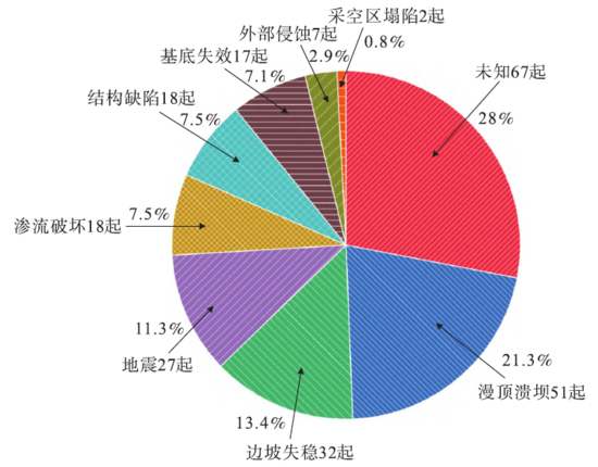 Fig. 4 1915—2023年尾矿库溃坝事故原因统计