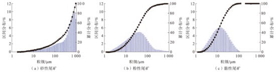 尾矿的化学组分以、Al、CaO、MgO、KO、Na等为主,根据成分含量可将其分为高硅型、钙镁质、铝硅质、铁硅质等类型。尾矿的物理性质,如粒径和密度,与其渗透性、导水率、固结性、压缩性、液化性等密切相关。尾矿的粒度差异较大,难以统一概括,通常采用曲率系数、不均匀系数、分形维数、形状因子和表面粗糙度等参数来描述其颗粒分布及形态特征。根据粒度与塑性指数,尾矿可分为砂性(+74 μm颗粒占比>50%)、粉性(+74 μm颗粒占比≤50%且塑性指数≤10)和黏性(塑性指数>10)三大类。若发生溃坝,细粒尾矿在地表河流等介质中传播距离更远,且因其比表面积大、更易被氧化,从而释放所吸附的污染物元素。此外,细粒尾矿排水固结能力差,堆存时易引发坝体病害,且浓缩沉降困难,不利于井下充填材料的制备与输送。由于细粒尾矿迁移扩散能力更强、潜在危害更大、利用难度更高,因此已成为尾矿堆存、灾害防控与资源利用等多个环节的关注热点