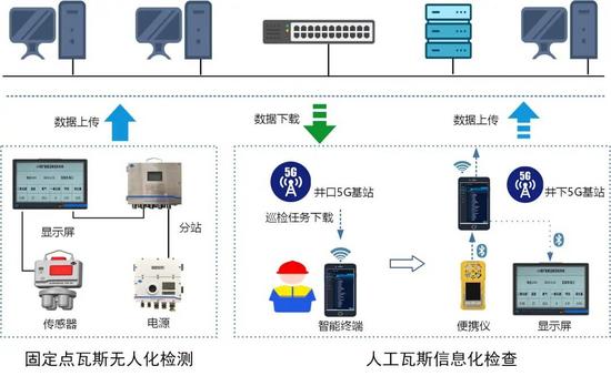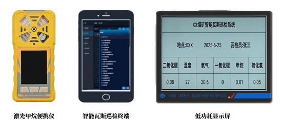 面对采掘面等需要人工检查的复杂场景,系统则通过配备“便携甲烷多参数检测仪+智能终端+无线低功耗显示屏”三级检测链路进行应对。瓦检员在巡检点完成检测后,可将检测数据无线传输至现场显示屏,并经由4G网络回传至瓦斯智能管理平台。这一机制不仅实现了对人工巡检流程的数字化监控,还实现了巡检数据的信息化管理与比对分析,进一步提升了人工巡检的效率与可靠性。