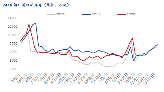 7月开始钢厂一直处于累库状态,8月利润改善,高炉铁水稳步回升,叠加双节长假补库刚需,钢厂港口以及海漂采购情绪均较积极,247家钢厂进口矿库存在9月26日累至9836.4万吨