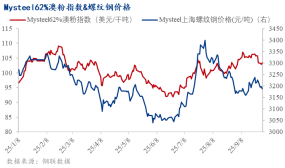 后期伴随终端需求触底回升、《2025-2026 钢铁稳增长》对预期的提振,市场逐步转向限产后的高炉和终端旺季需求复苏逻辑,黑色价格反弹,62%澳粉月均价格增至101美元/干吨。