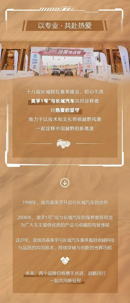 铁甲工程机械网> 工程机械资讯> 行业 > 美孚1号™助力长城汽车勇闯阿拉善英雄会