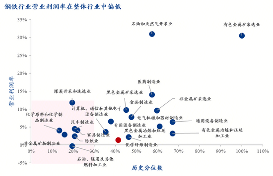 同时,从盈利角度来看,黑色金属冶炼和压延加工业的营业利润率虽处于偏低水平,但纵向对比历史数据,尚未触及绝对低位,甚至今年较去年整体利润水平还有所改善。因而,在各行业中,钢铁行业当前的产能和盈利问题尚不突出。