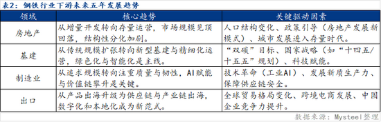 综合来看,下游端均在寻求绿色化、数字化转型,这也是“十五五”规划的预计发展方向,对应钢铁行业则在需求端有结构性变化。