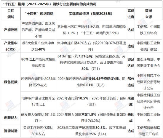 一、“十四五”规划中钢铁行业相关内容的完成情况