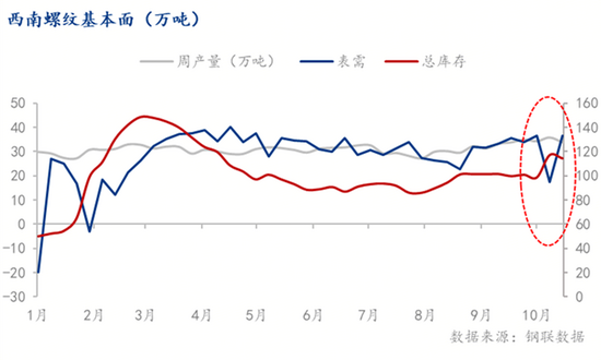 西南地区的建材价格是全国价格的低洼,西南地区实际价格大约在2940元/吨,主要是西南建材自身矛盾较大,建材供过于求,截止目前,2025年西南螺纹产量均值约31万吨,螺纹表需均值28万吨,10月西南螺纹产量均值35万吨,10月西南螺纹表需均值30万吨。