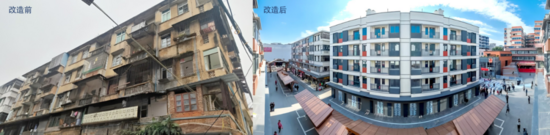 广州花都区集群街2号作为广东省首个业主自主更新、自筹资金、原拆原建的危旧房改造试点项目,于2025年1月实现交付。图为项目改造前后对比。