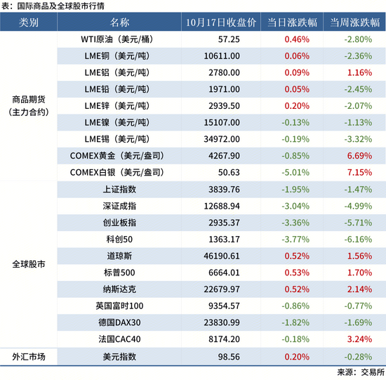 宏观资讯:李强主持召开经济形势专家和企业家座谈会,综合治理行业无序、非理性竞争;何立峰与美国财政部长贝森特、贸易代表格里尔举行视频通话,双方同意尽快举行新一轮中美经贸磋商;《求是》杂志评论员文章表示,进一步稳定市场预期,多出有利于稳增长、稳预期的政策;今年前三季度,我国货物贸易进出口33.61万亿元,同比增长4%,其中出口增长7.1%;今年前三季度,M2同比增长8.4%,社会融资规模增量累计为30.09万亿元,比上年同期多4.42万亿元。