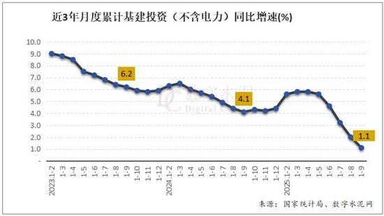 2025年前三季度,全国基础设施投资(不含电力)同比增长1.1%,增速较1-8月下降0.9个百分点,低于去年同期3个百分点。其中,铁路运输业投资同比增长4.2%,道路运输业投资同比下降2.7%,水利管理业投资同比增长3%。