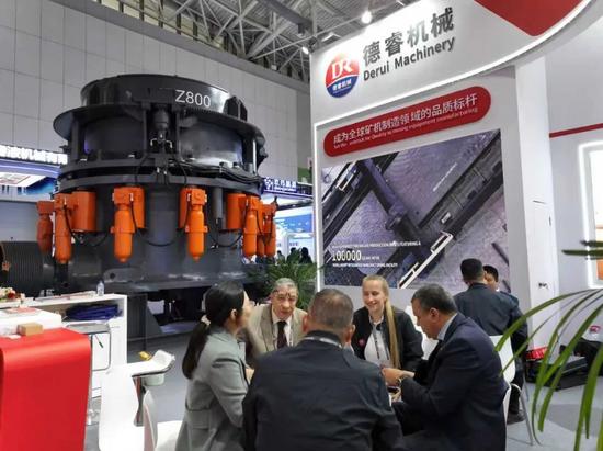 德睿集团展出的MPZ800重型多缸液压圆锥破碎机“细碎王”,是德睿为满足大中型矿山高效细碎需求而推出的爆款机型,无论是功能还是生产效率都可谓一家独“大”,在复杂工况下始终保持稳定的出料粒度和较高的处理能力,能够充分满足大矿开采对技术、产能、效率、能耗、稳定性和运维成本等上限要求,其大体量、大功力、大产能和大收益等四“大”优势,充分凸显矿机“大”时代的王者风范!该设备现已在国内外多个项目中投入使用,高效稳定的作业性能和优良出色的运行表现受到用户的充分肯定。