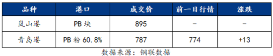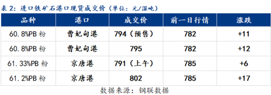 表2:进口铁矿石港口现货成交价(单位:元/湿吨)