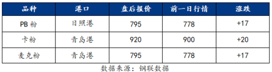 有市场参与者称:宏观预期向好,市场参与者信心提振,卖方报价上调10-15,钢厂按需采购,对精粉涨价接受度一般。