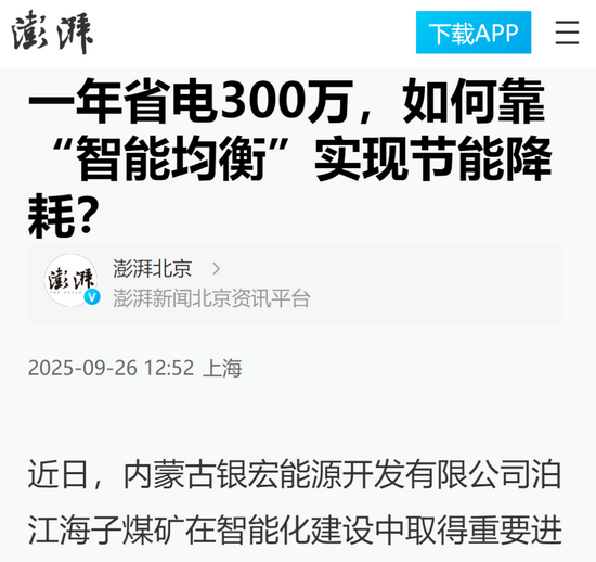 近日,人民网、中国网、澎湃新闻等主流媒体以《一年省电300万!如何靠“智能均衡”实现节能降耗?》为题,对中国煤科天玛智控自主研发的新一代Longwallmind6.0操控平台进行报道。以下是媒体报道的内容。